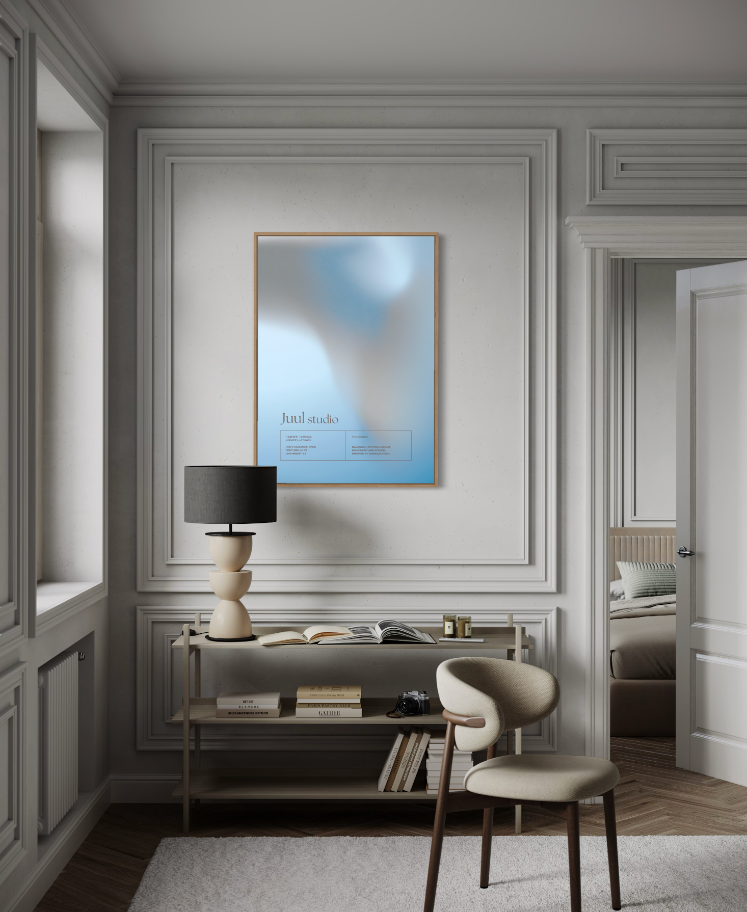 This poster was digitally made from the inspiration of the spray paint technique, which I make my art with by hand. To make this poster something different, The text area at the bottom reveals details that are usually hidden in design. On the left, it lists dominant colors and fonts, while the right side contains words and descriptions reflecting the thoughts and ideas behind the design. A must-have for anyone who loves a mix of art and design.